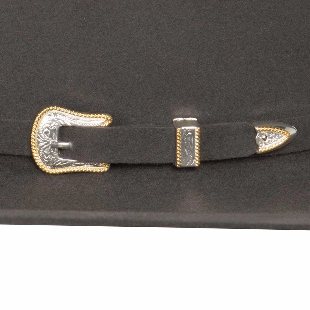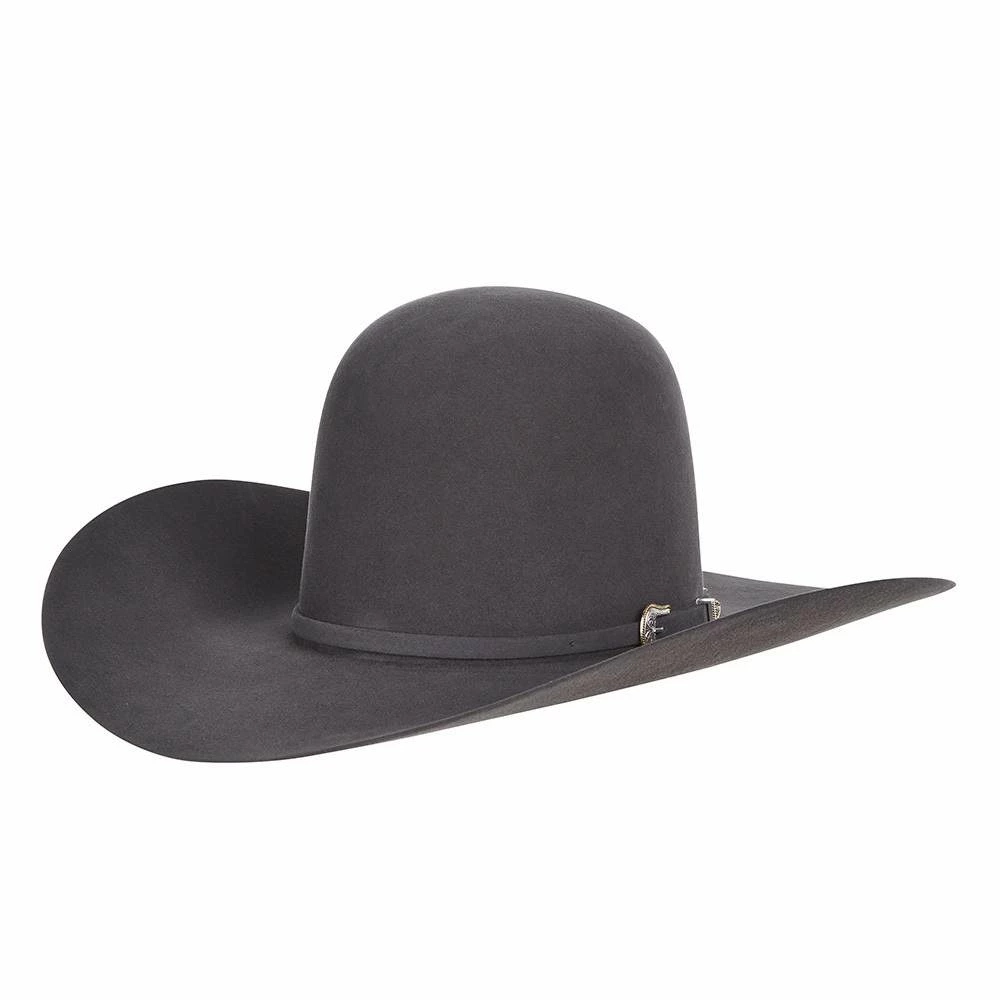 Ride all winter with this American Hat Co 10X Steel Open Crown Felt Cowboy Hat. This 10X quality steel felt features 4-1/2″ brim, open crown, matching hat band with silver buckle set, and leather sweatband. Add your favorite crease and make it your own!