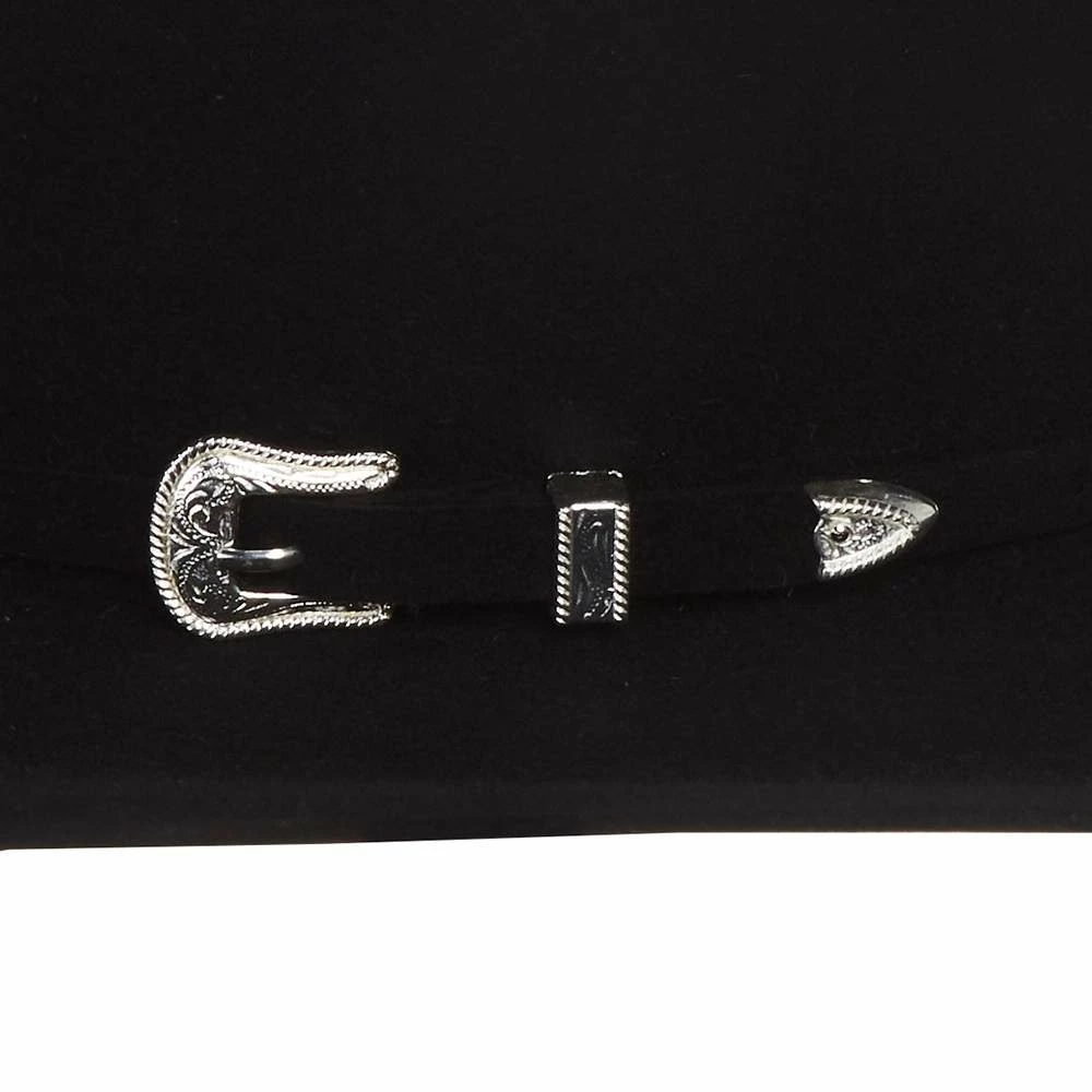 You’ll look great with your favorite crease added to this American Hat Company 7X Black Open Crown Felt Hat. This open crown cowboy hat has a 4-1/4″ brim, matching black felt hat band with silver buckle set, and leather sweatband. Add your favorite crease and make it your own!