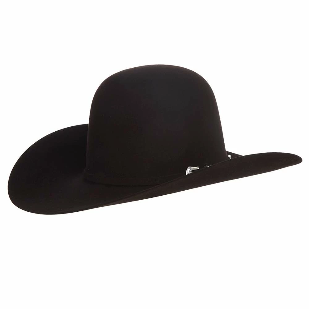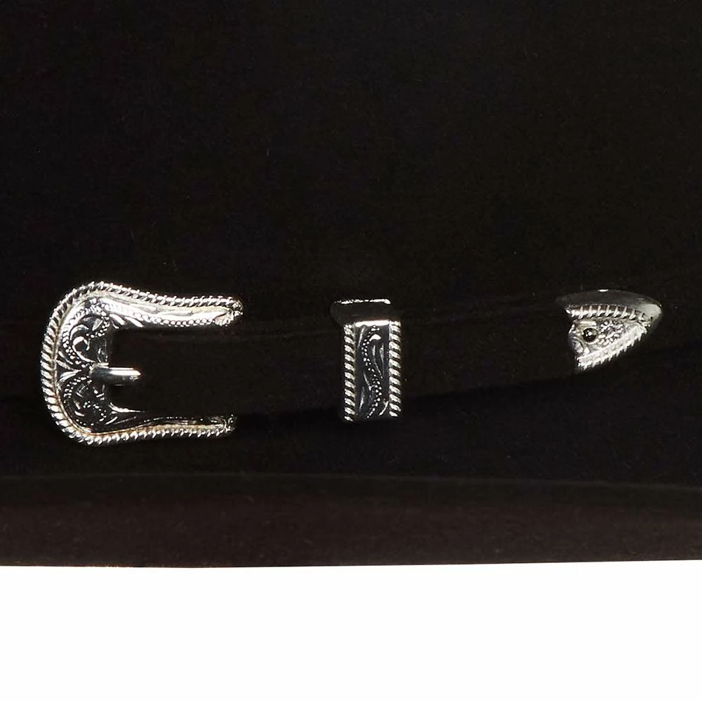 You’ll look great with your favorite crease added to this American Hat Company 7X Black Open Crown Felt Hat. This open crown cowboy hat has a 4-1/4″ brim, matching black felt hat band with silver buckle set, and leather sweatband. Add your favorite crease and make it your own!