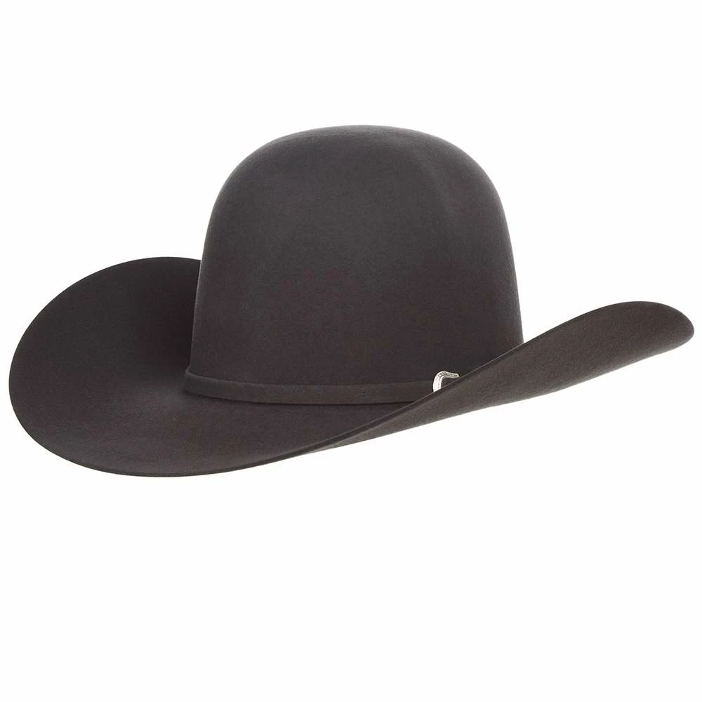has been building cowboy hats for the professional cowboy since 1915. They are made in Texas, USA only 30 miles from NRS, right in the heart of cowboy country. Open crown hats allow for whatever crease you like and increasingly popular, wider 4-1/4″, 4-1/2″, and even 5″ brims are available. If you look around at the rodeo world today, most of the unique creases you see being worn are on American Hat Company open crown hats with wider 4-1/4″ and 4-1/2″ brims. Order your open crown today and crease it yourself or let our expert hat creaser crease it to your specifications.