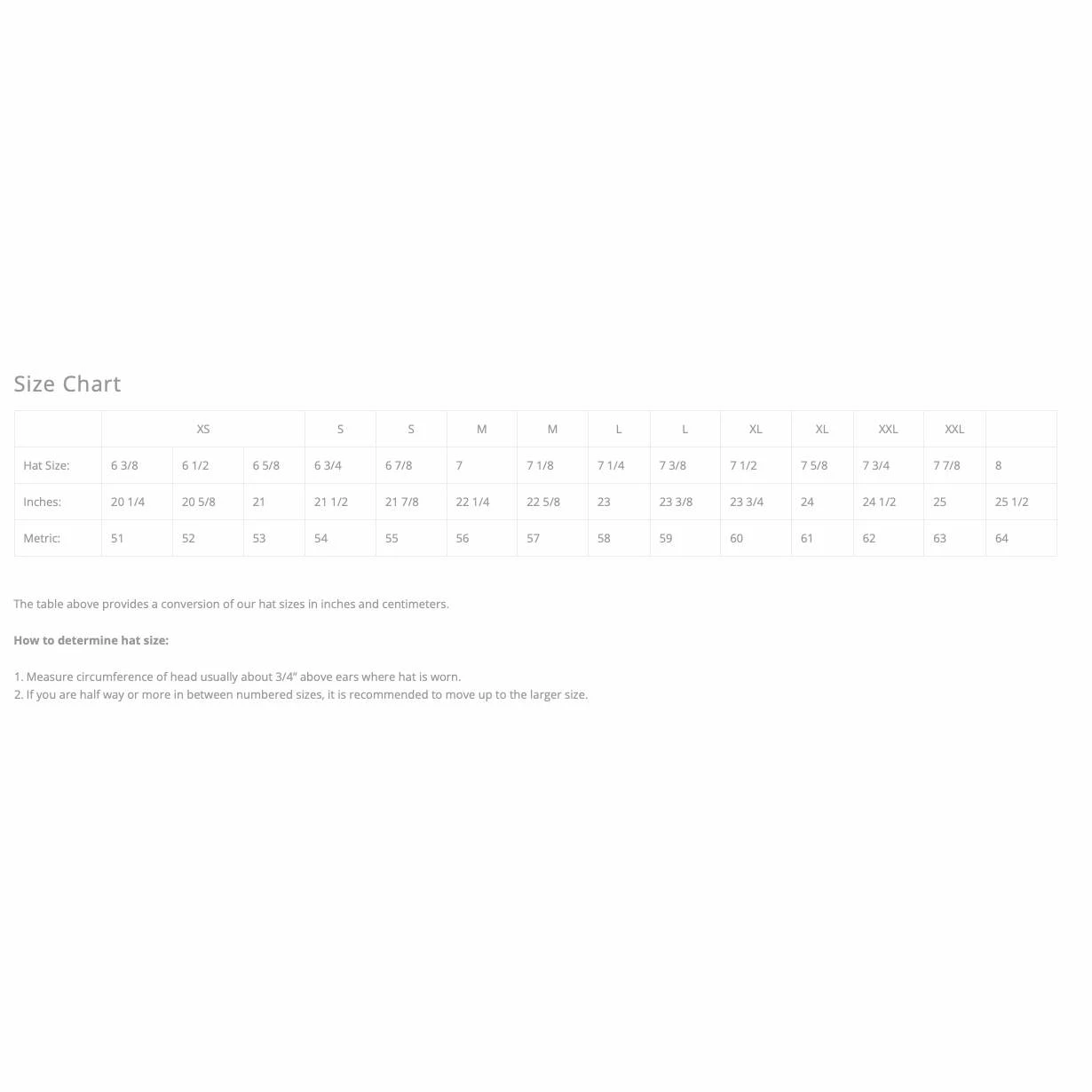 | Size | 63/4, 67/8, 71/8, 71/4, 71/2, 73/8, 75/8, 73/4, 7 |