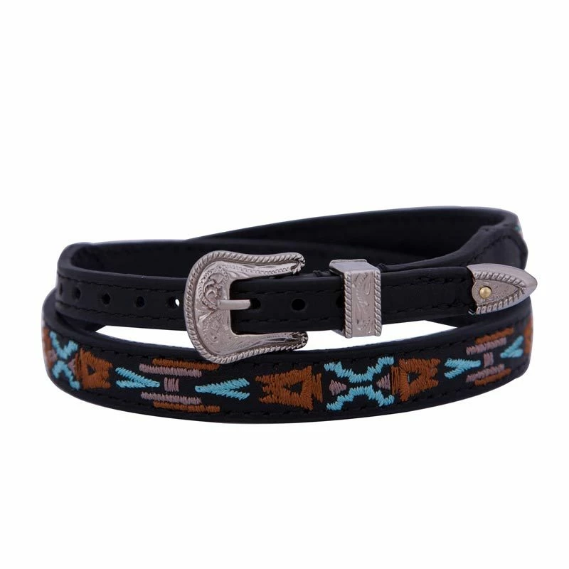 Wrap your hat in this Black Aztec 3/8″ Hat Band with Silver Buckle