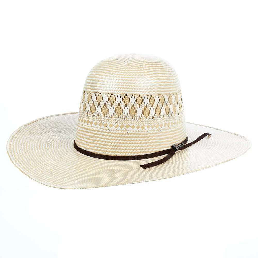 This straw hat features a two tone color body and an open crown so that you can have our hat experts crease this hat however you desire!