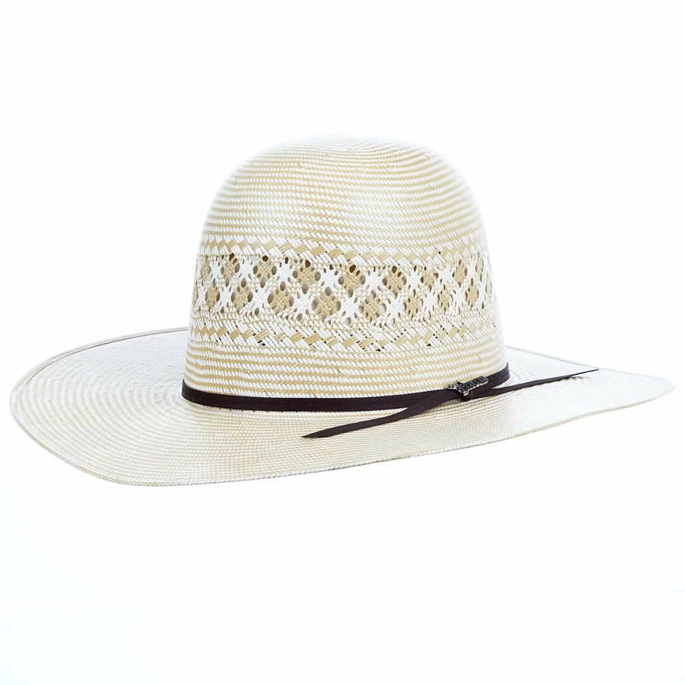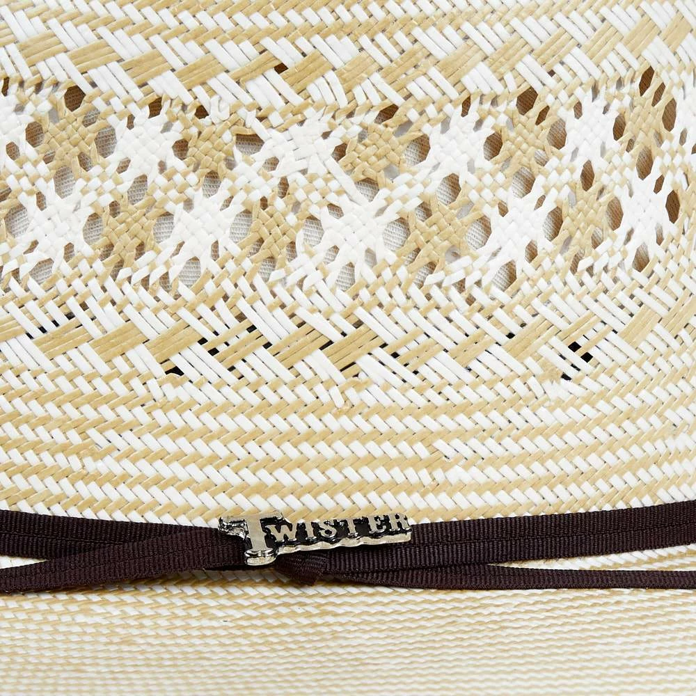 This straw hat features a two tone color body and an open crown so that you can have our hat experts crease this hat however you desire!