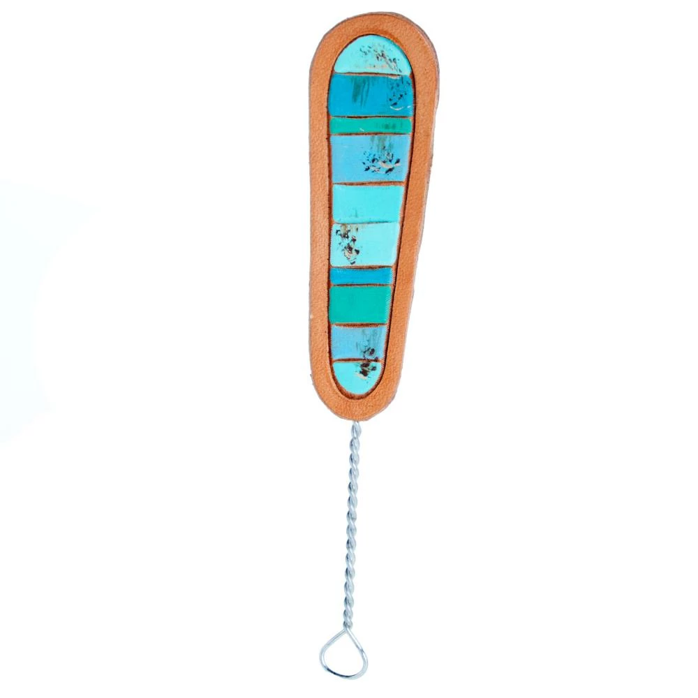 Add this new tooled leather McIntire Saddlery Turquoise Stone Hat Pick to your hat for a fun and unique look!