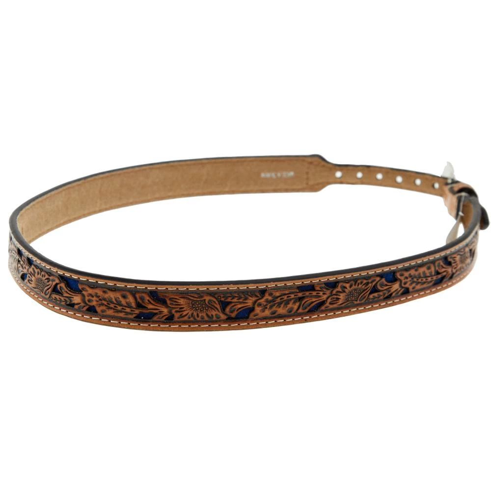 Dress up your hat with this MF 3/4″ Floral Tooled with Blue Underlay Hat Band!